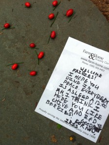 This is what it’s like to be 8. Half loudly asserting your independence and personhood, half investing in your belief in fairies. And leaving them a little something to show you care.