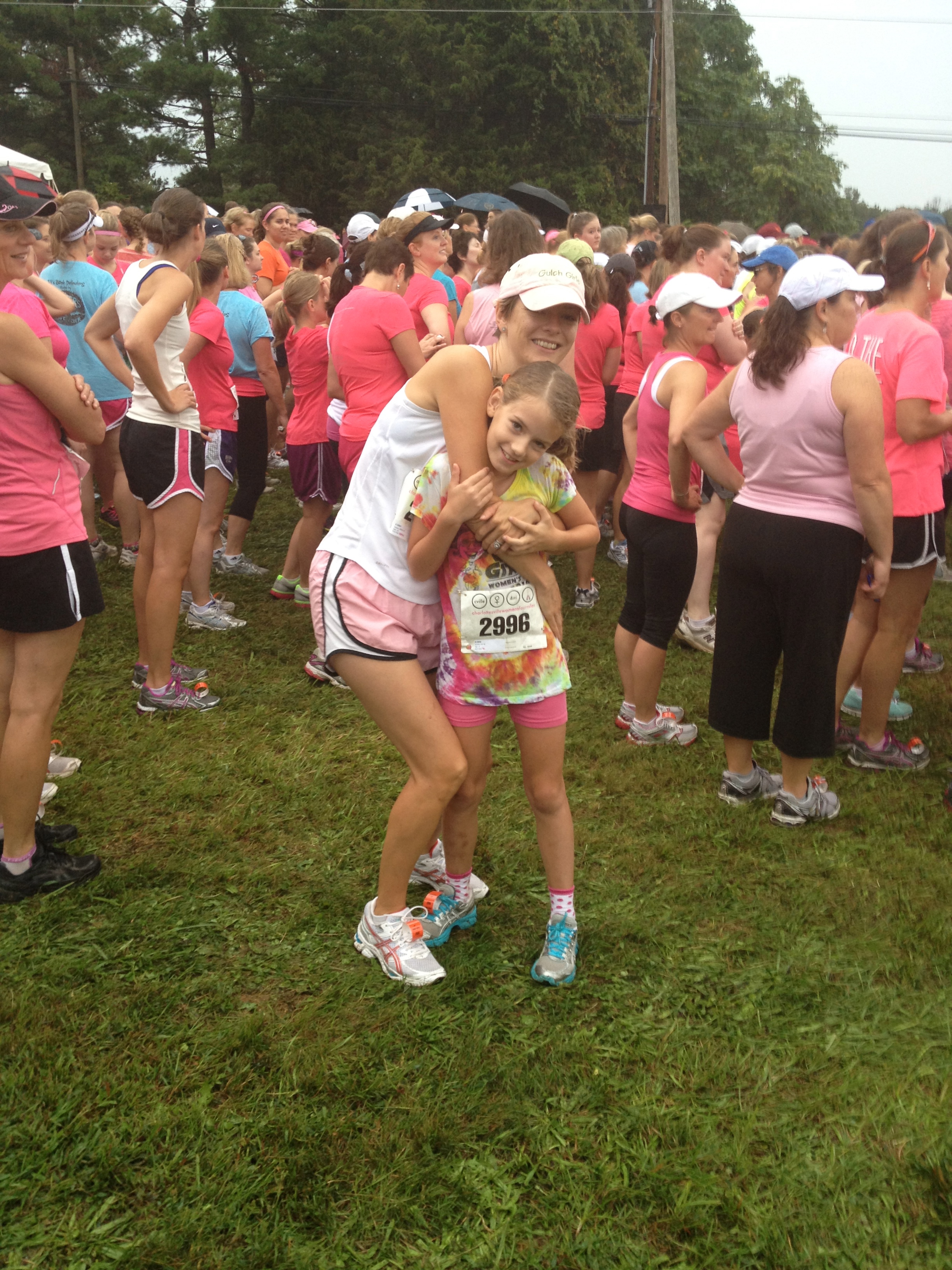 Since that successful first time, I’ve signed up to do the 4-Miler every year. First, for sentimental reasons, as a gesture to myself of how meaningful the experience of going from couch potato to running spud (SORRY) was to me. And second, because it’s a fantastic all-woman race raising funds for breast cancer research, and it’s just a lot of fun to run. And last September’s race was especially exciting for me, because my daughter was finally old enough, at 8, to officially sign up, train for, and run it with me!